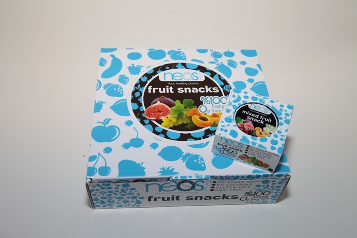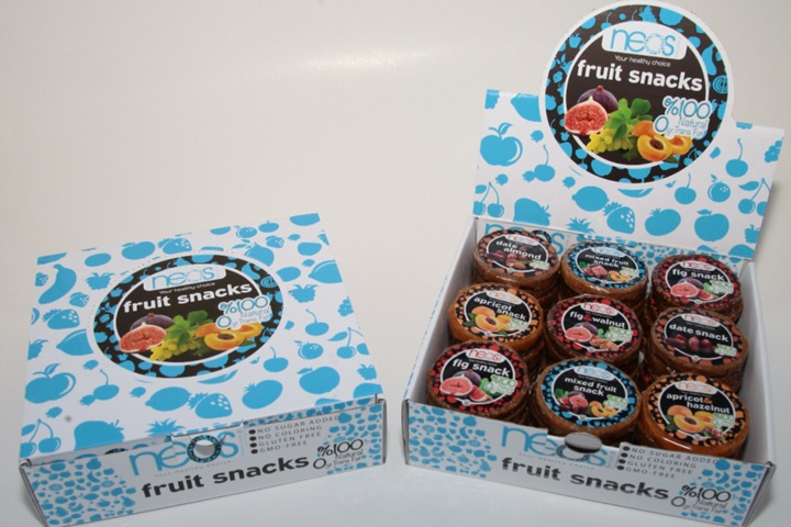 neos snacks are 100% natural dried fruit paste alternatively mixed with nuts for excellence in taste, produced and packed at BRC Grade A certified facility located in Izmir, Turkey.
